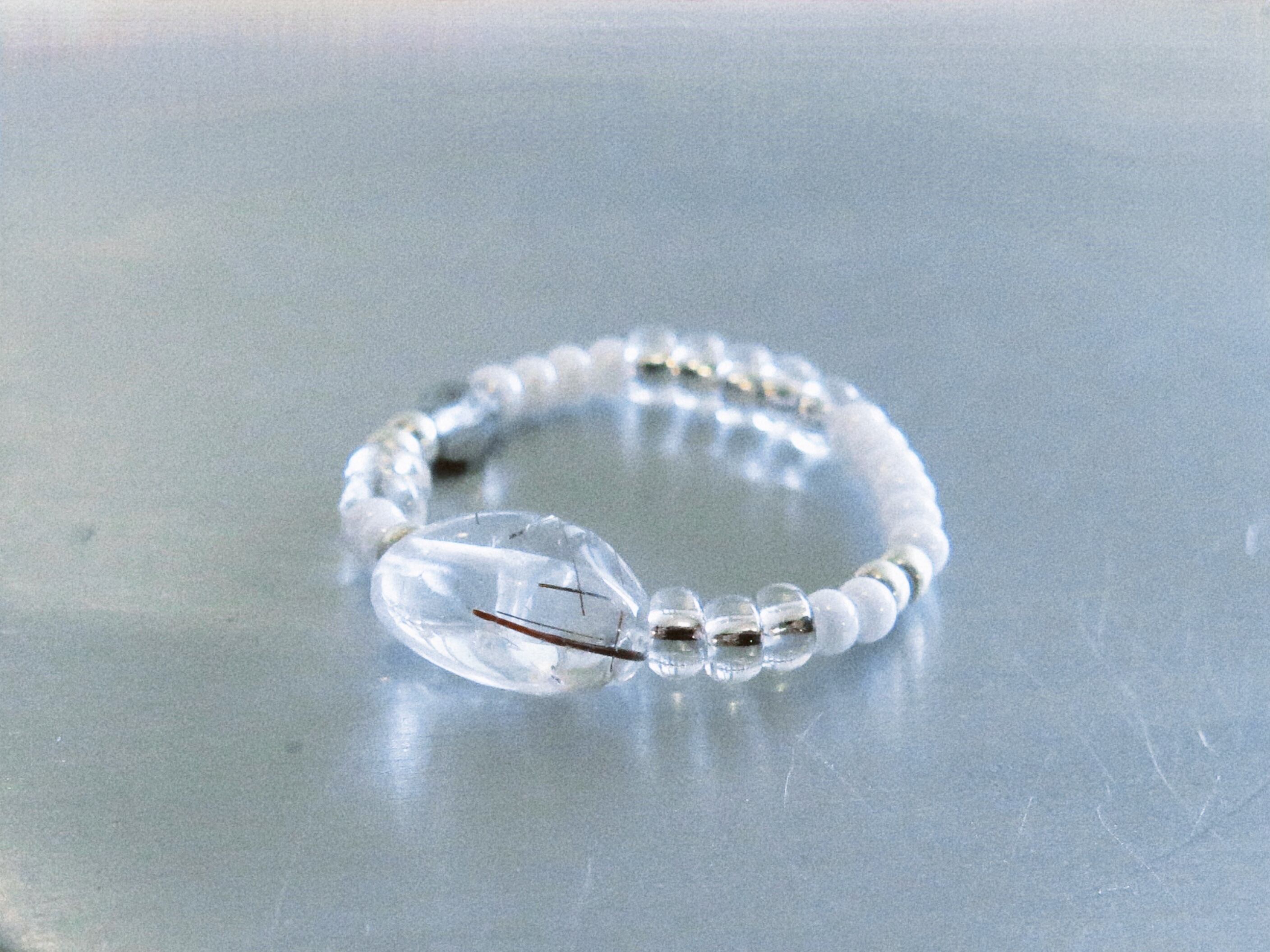 − 商品番号 MD589R 吸い込まれるように美しいシルバールチルクォーツ。その美しさを纏うリング。 − 仕様(最大値) サイズ:#10-13 重量:0.87g − 素材 オペロン糸(ポリウレタンゴム) / シードビーズ / チェコビーズ − 天然石 シルバールチルクォーツ:希望の象徴である銀針を持ち、道に迷った時にその道を照らし導く。金運を向上させる。